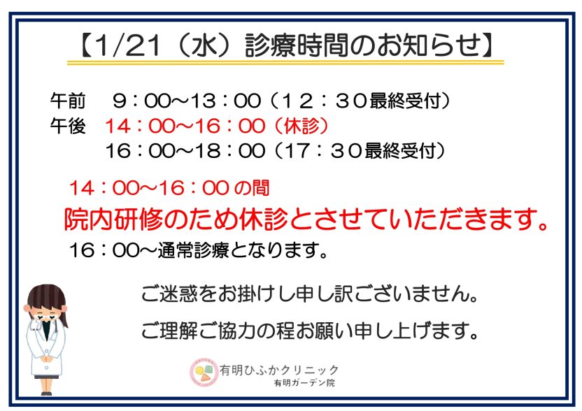 【1月21日診療時間についてのお知らせ】